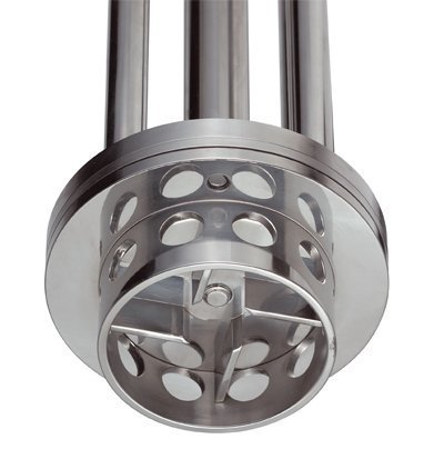 La trecerea prin deschiderile statorului, produsul este forfecat mecanic. Particulele sunt forfecate de rotor la o viteză de 20 m/sec. La final, produsul este forfecat hidraulic la ieșirea la mare viteză prin fantele statorului. În același timp, produsul revine la capul de lucru, asigurând cercul de amestecare și generând o circulație puternică la interiorul rezervorului. Combinația de aspirație verticală și propulsie radială conduce la un flux de circulație.