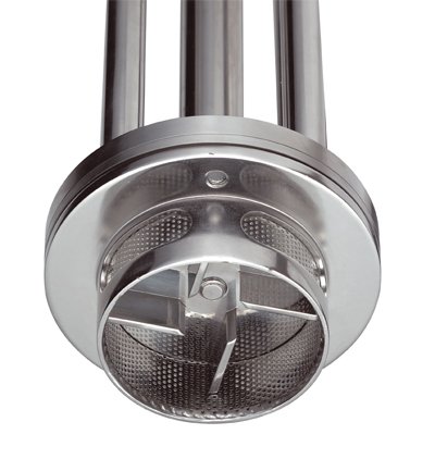 Viteza mare și toleranțele ajustate dintre rotor și stator conferă un potențial ridicat de aspirație; produsul este aspirat de pe fundul rezervorului și antrenat către centrul capului.